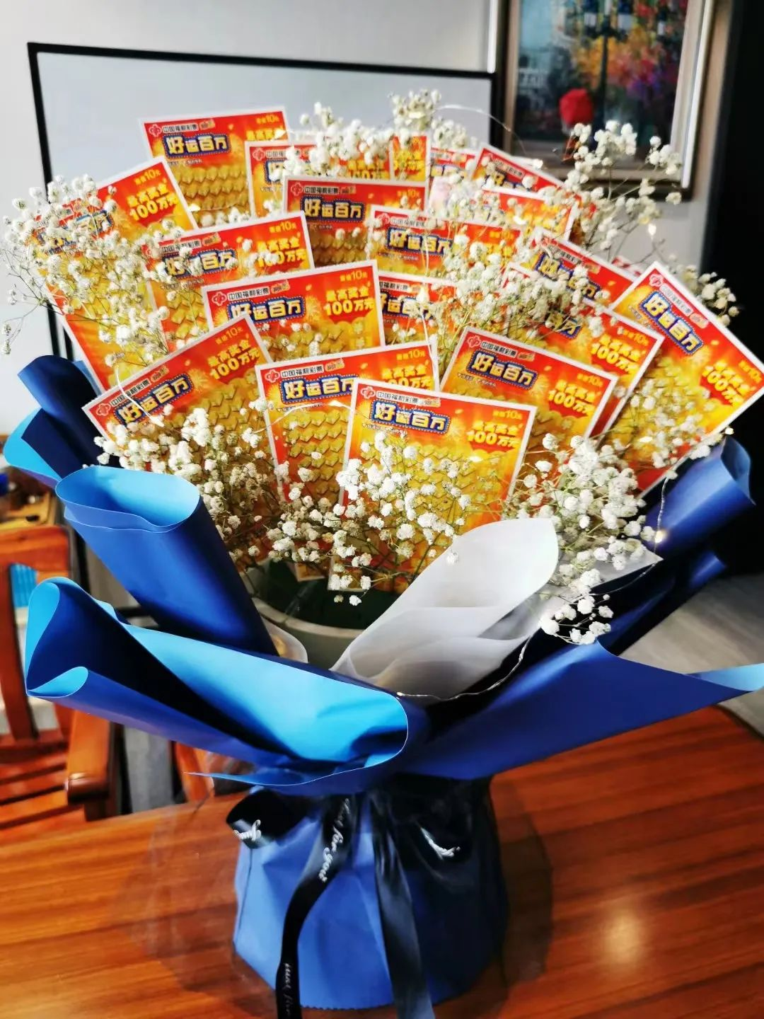 (2022年9月28日是张扬律师执业周年日,团队律师们向张扬律师送了一束“男人无法拒绝的花”——彩票花)