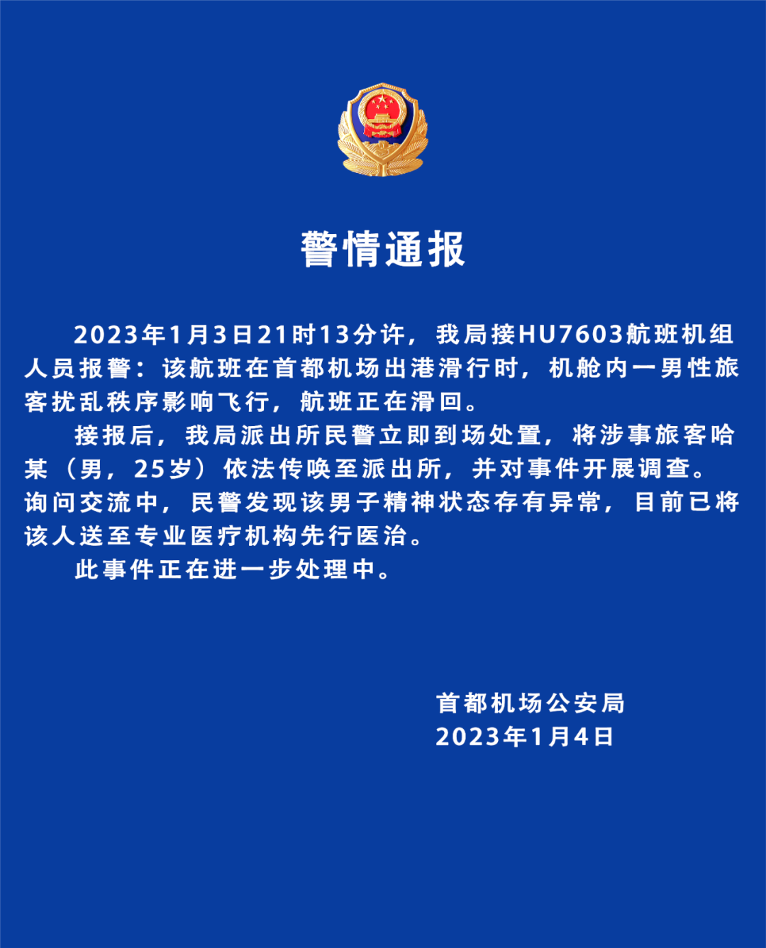 “飞机要出事了”......近日一段视频在网络流传,在画面中一男子在飞机上大喊并试图拉开客舱门引起乘客们的恐慌。据媒体报道,有乘客称这名男子突然从机舱尾部跑过来,“他一边奔跑一边大喊‘飞机快出事了,死神来了’,一直跑过头等舱直奔舱门,看样子想把舱门拉开。”航空公司在事件发生后发布统稿表示该名旅客已移交机场公安,该航班滑回后,受机场夜间关闭影响取消。警方随即也发布通告说明事件及处理情况。
