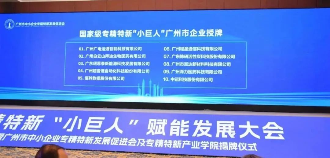 2023年1月13号,工业和信息化部中小企业发展促进中心、广州市工业和信息化局举办《专精特新“小巨人”赋能发展大会暨广州市中小企业专精特新发展促进会及专精特新新产业学院揭牌仪式》,会议上对被认定为“国家级专精特新小巨人”的十家广州企业进行授牌。