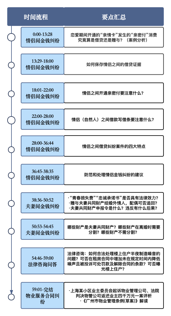 同时,本期节目就近期热点案例之上海某小区业主委员会起诉物业管理公司返还全体业主四千万元一案进行评析。两位律师以热点案例为切入点,对近期发布的《广州市物业管理条例(草案)》进行解读,点评草案对破解业主大会“四难”问题,解决业主大会与物业公司纠纷措施等草案亮点。