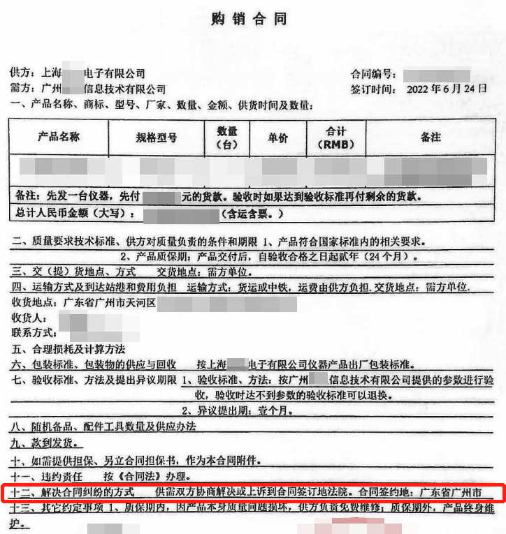 如果我方在本次交易中占据优势地位,则可考虑从“我方所在地/合同履行地/合同签订地”这几类地点中的选择一个对我方最有利的法院作为管辖法院。在这里需要注意的是,当约定若发生纠纷,由“合同履行地法院”或“合同签订地法院”管辖时,需要明确将合同履行地或者合同签订地明确约定至区(县)一级的行政区划。