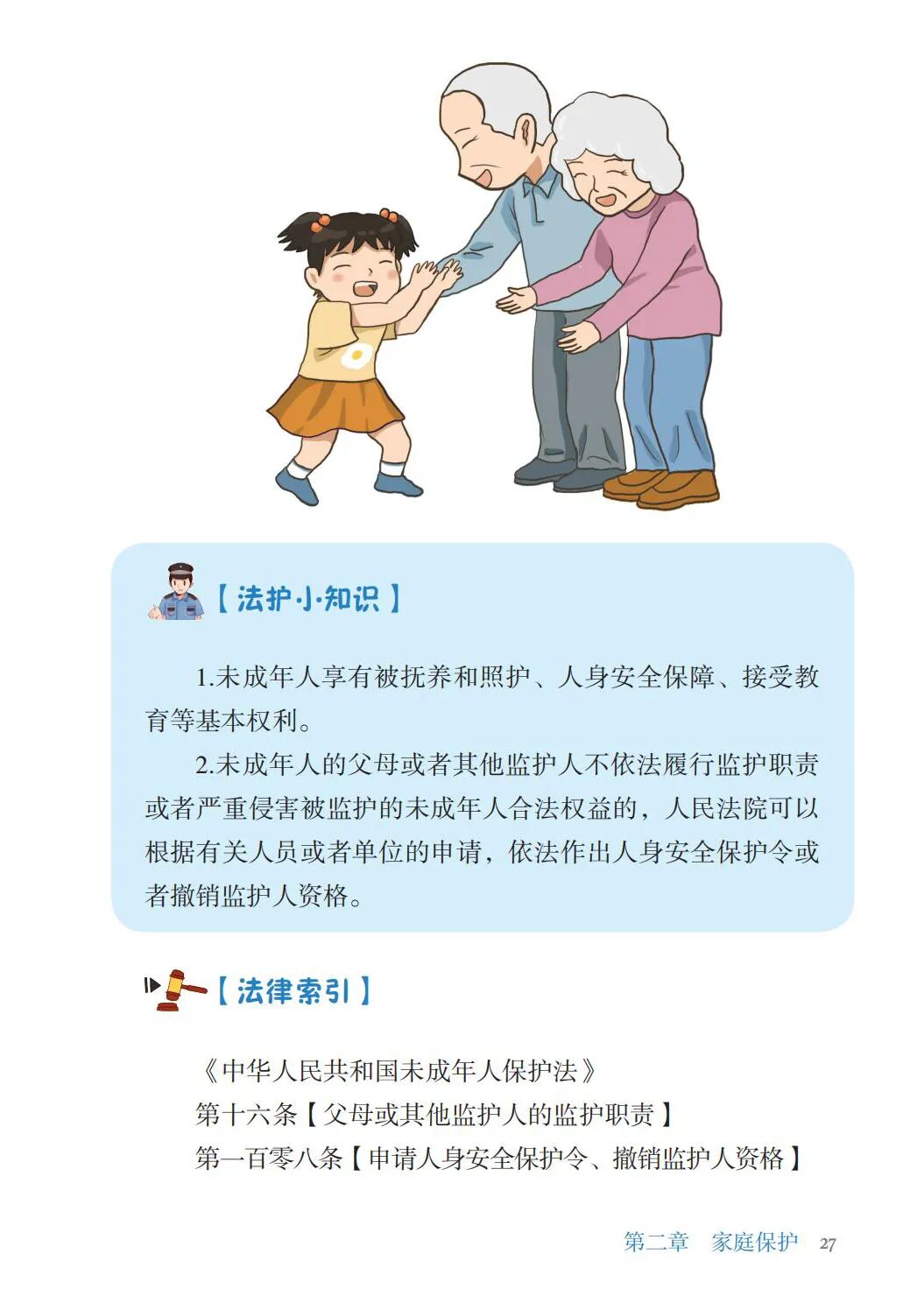 第一百零八条 未成年人的父母或者其他监护人不依法履行监护职责或者严重侵犯被监护的未成年人合法权益的,人民法院可以根据有关人员或者单位的申请,依法作出人身安全保护令或者撤销监护人资格。