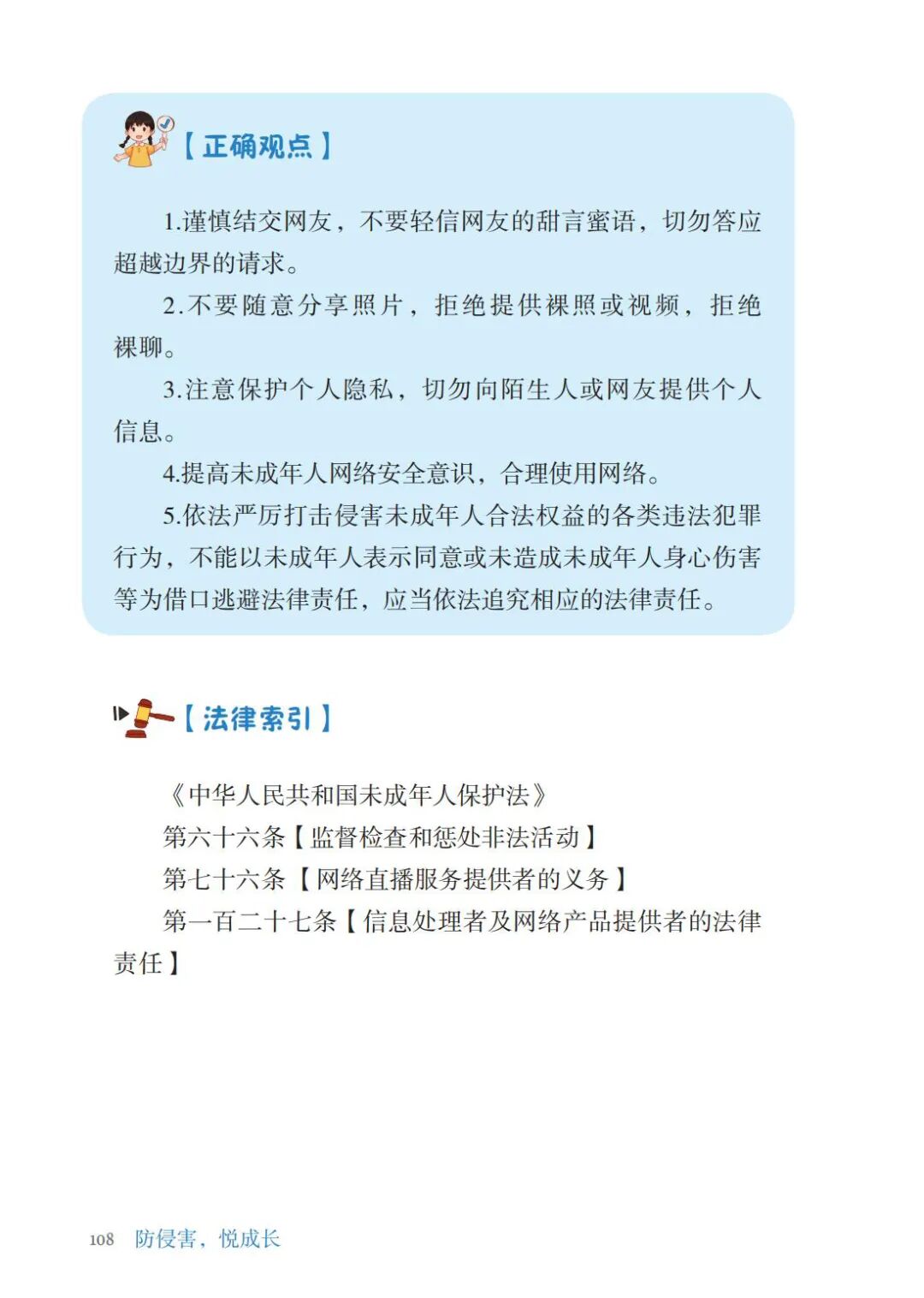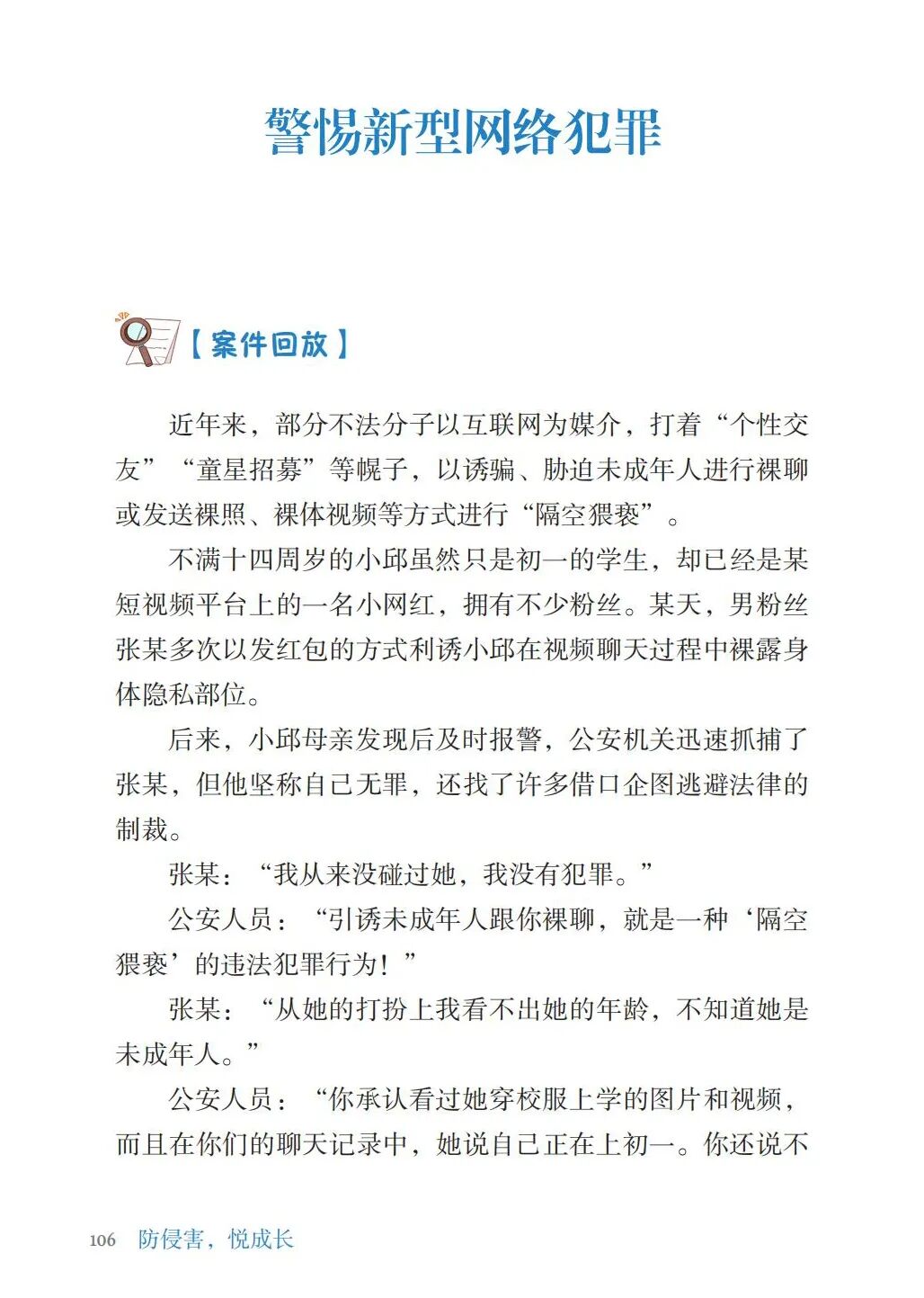《防侵害,悦成长——未成年人保护法(新修)案例分析》以《未成年人保护法》为主线,分为总则、家庭保护、学校保护、社会保护、网络保护、政府保护和司法保护七章;通过以案说法、法护小知识、拓展阅读、观点判断以及法律检索,配以精美插图等形式,力图贴近孩子们的日常生活、学习、娱乐,让普法变得更加喜闻乐见,润物无声。