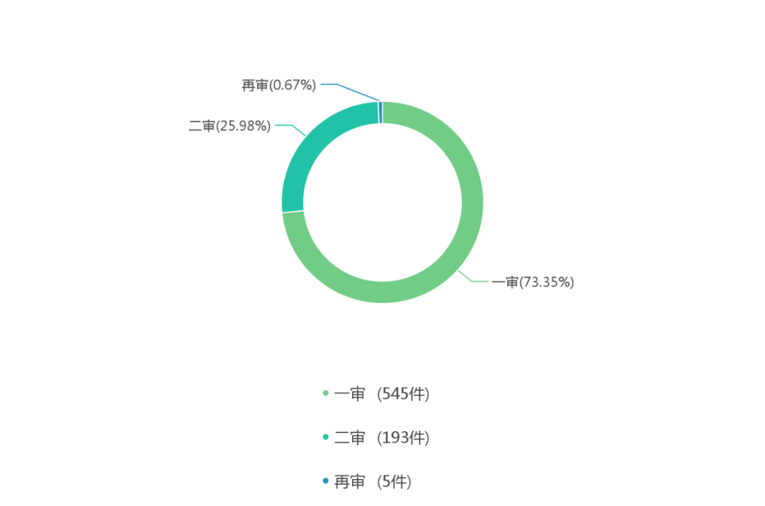 从上面的程序分类统计可以看到医疗损害责任纠纷下当前的审理程序分布状况。一审案件有545件,二审案件有193件,再审案件有5件。