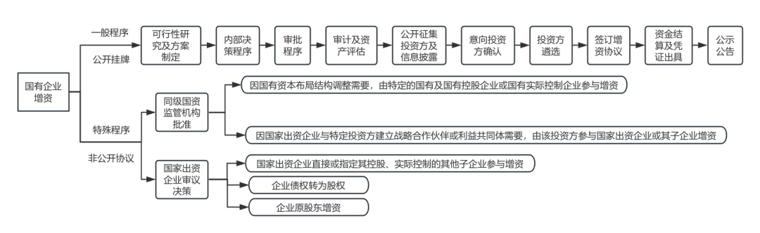 根据《中华人民共和国企业国有资产法》《中华人民共和国公司法》《企业国有资产交易监督管理办法》《企业国有资产交易操作规则》等相关法律法规的规定,以下所称“国有企业增资”均仅指国有及国有控股企业、国有实际控制企业增加资本的行为,不包括政府对国家出资企业增加资本金的情形,且以下流程或程序主要指增资企业所需履行的程序。