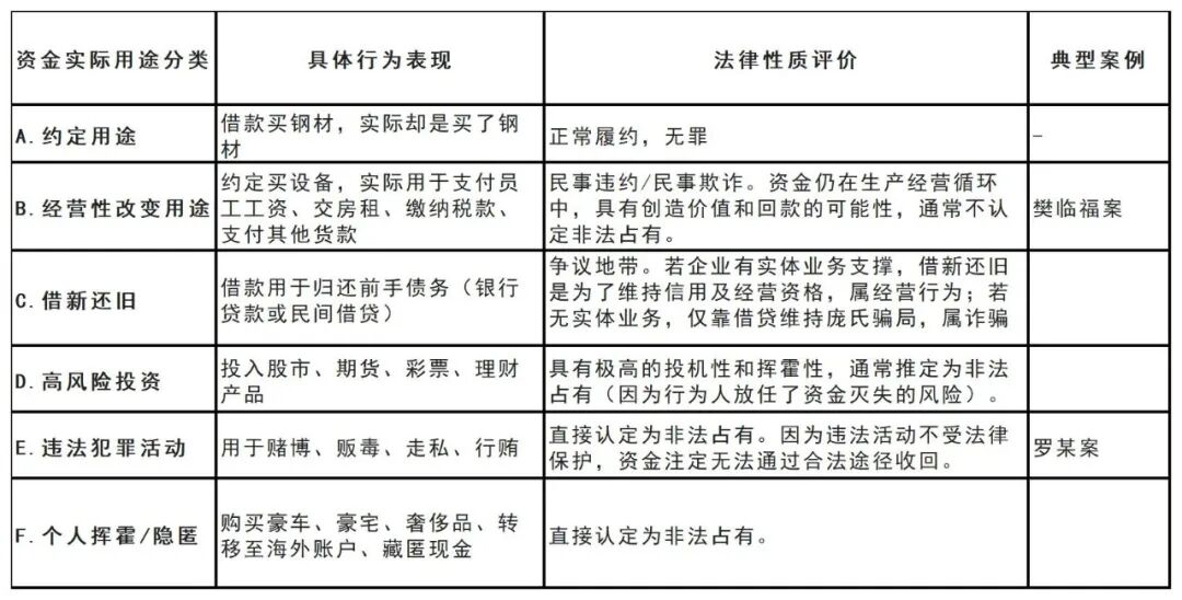 在虚构用途型案件中,资金的实际去向是判断主观目的的最强证据,也是经侦侦查和律师辩护的决胜战场。