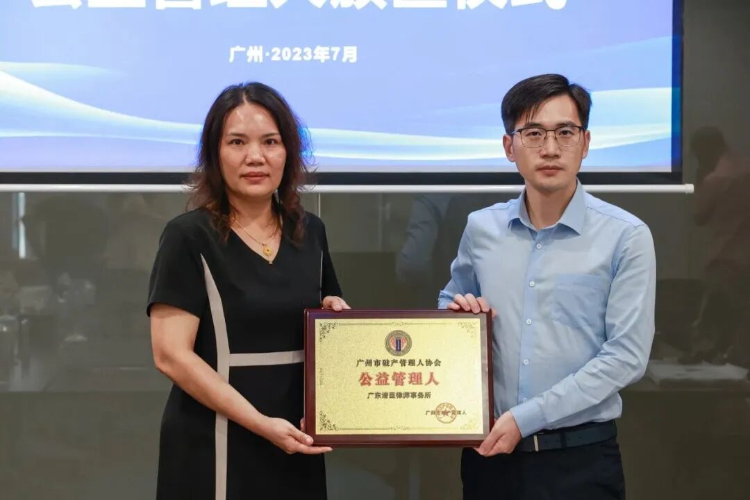 2023年7月11日,为进一步提高管理人参与公益管理人工作的积极性,推动本地区公益管理人高质量发展,助力我市法治化营商环境的不断优化,广州市破产管理人协会在广东诺臣律师事务所(以下简称:“诺臣所”)举行了公益管理人授牌仪式。其中,诺臣所位列首批公益管理人名单,由我所合伙人、广州市破产管理人协会理事麦佳耀律师代表接收牌匾。