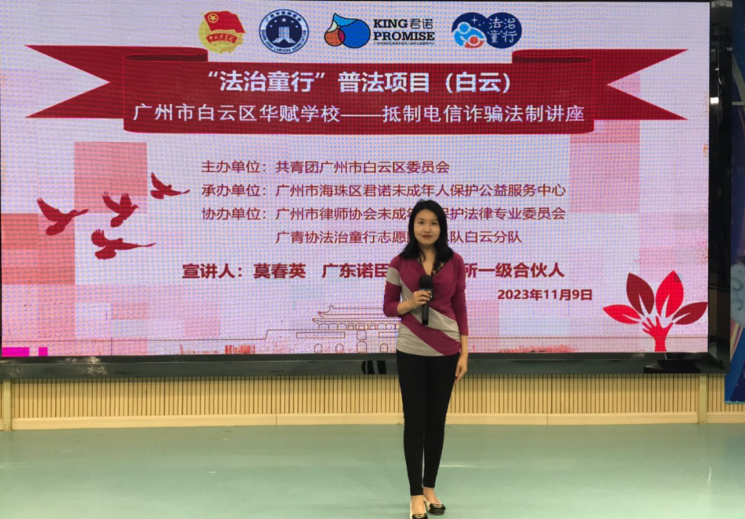 2023年11月9日 莫春英律师为广州市白云区华赋学校开展普法宣讲