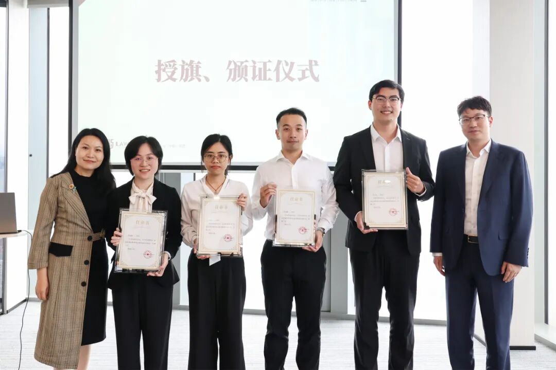 随后,监事会主席雷建威律师为诺臣所志愿服务队授旗,并由管委会副主任车天驰律师,公益与公共法律服务工作委员会主任莫春英律师为梁伟君律师(志愿服务队队长)、陈冰锦律师(副队长)、李一飞律师(副队长)、谢扬律师(副队长)、黄晶律师(秘书长)颁发了任命书。