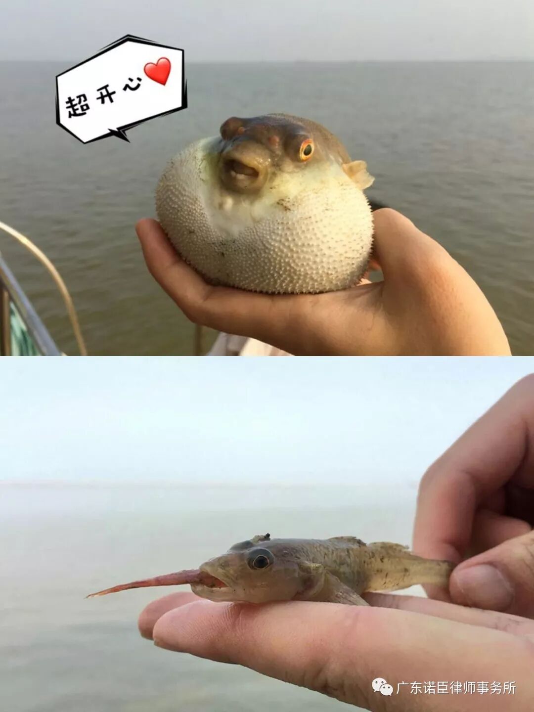 3个小时的游程,小伙伴们争相在船头船尾,夹板船舱的各个角度摆拍!船家也忙碌着寻找海中央最佳位置,放下4个长度超过80米的渔网,为我们打捞上来一网一网的新鲜海味!有比手掌还大的螃蟹、有各种河鱼,贝、虾、蟹,居然还有河豚!大家一片惊呼,与这稀有生物拼命合照!