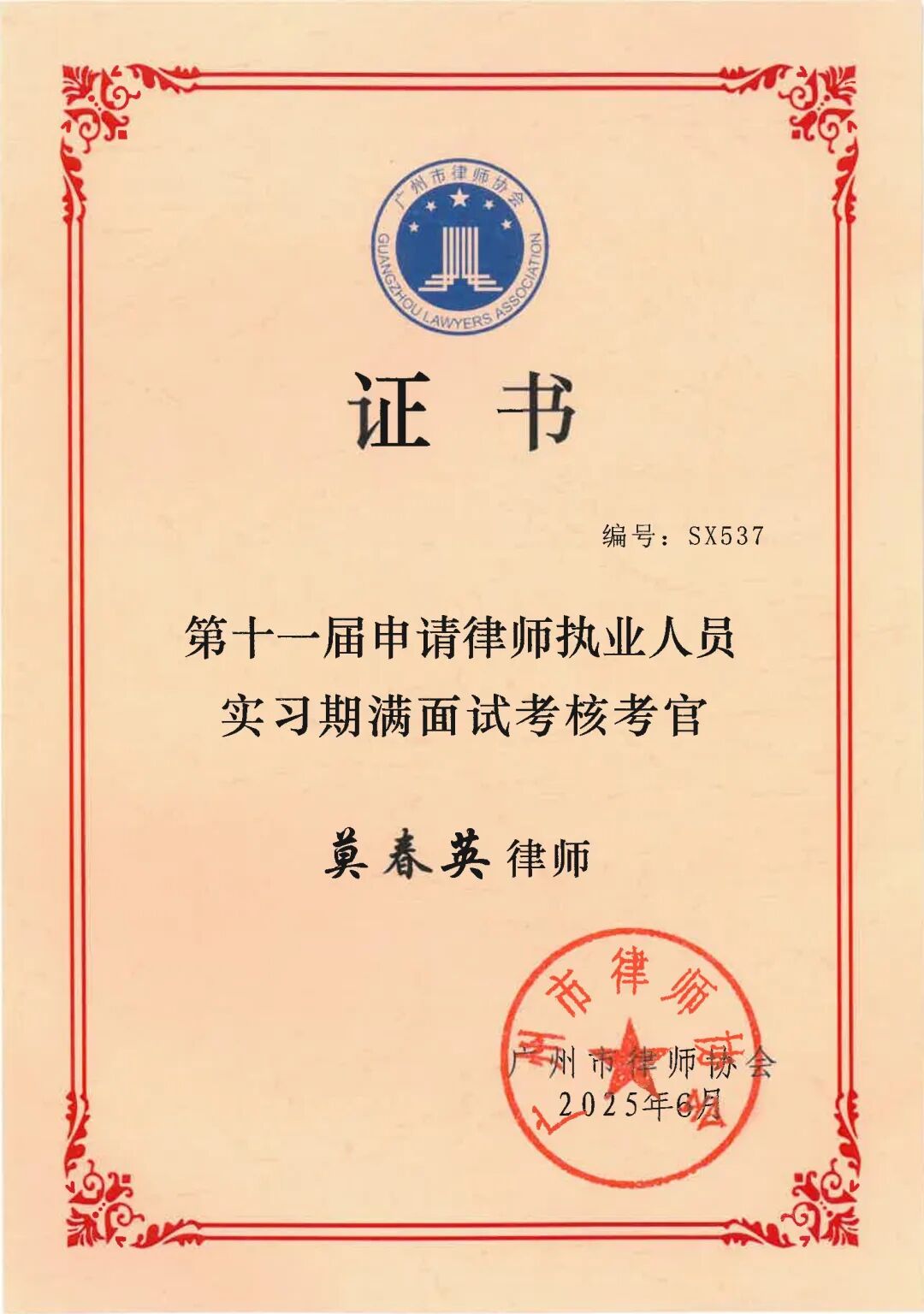 近日,广州市律师协会公布第十一届申请律师执业人员实习期满面试考核考官名单。广东诺臣律师事务所(以下简称“诺臣所”)高级合伙人林思臻律师、李小林律师,一级合伙人付寅翀律师、莫春英律师及合伙人岑曦蕾律师、温彦律师、谢扬律师、林锟律师、饶倩律师凭借卓越的专业素养与丰富的实务经验成功获聘。