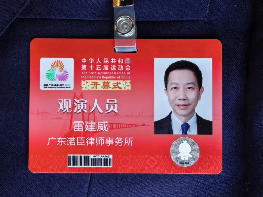 雷建威律师在观演后表示,此次受邀观演开幕式倍感荣幸,现场庄严的仪式、精彩的表演以及粤港澳三地代表团携手入场的场景令人心潮澎湃。开幕式不仅展现了体育健儿的昂扬风貌和中华体育精神,更彰显了粤港澳大湾区的协同发展活力与“一国两制”的制度优势。作为法律从业者,将以此次观演为契机,进一步立足专业领域,为大湾区建设贡献法治智慧。