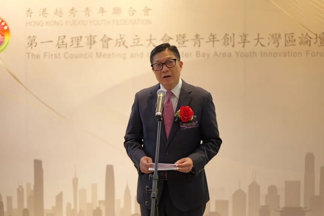 为进一步推动粤港澳大湾区青年交流与人才发展,由香港越秀青年联合会主办,广州市越秀区海外联谊会、香港科技大学及香港广州青年总会支持的“香港越秀青年联合会第一届理事会成立大会暨青年创享大湾区论坛”于11月22日下午在香港科技大学花旗集团演讲厅隆重举行。论坛以“创享大湾区—Z世代青年力量”为主题,汇聚政、商、学界代表,共同探讨青年如何把握湾区机遇,贡献智慧与力量,开创新天地。活动获香港特别行政区政府、广州市越秀区政府及社会各界鼎力支持。应邀担任主礼嘉宾的包括香港特别行政区保安局局长邓炳强、中央驻港联络办青年工作部二级巡视员张国来、广州市越秀区二级巡视员邓伟胜、全国政协委员兼香港科技大学副校长吴宏伟教授等。