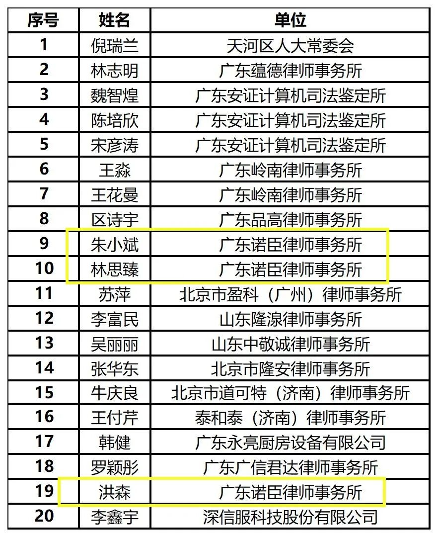 为进一步加强广东省粤北地区商业秘密保护体系建设,提升企业商业秘密保护能力,充分发挥相关领域专家的专业支持作用,广东省商业秘密保护服务工作站(粤北地区)于今年9月面向社会公开征集商业秘密保护领域专家。经遴选,共有20位同志入选专家库,其中,广东诺臣律师事务所高级合伙人朱小斌律师、林思臻律师及合伙人洪森律师凭借深厚的专业素养及在商业秘密保护领域的突出表现位列其中。