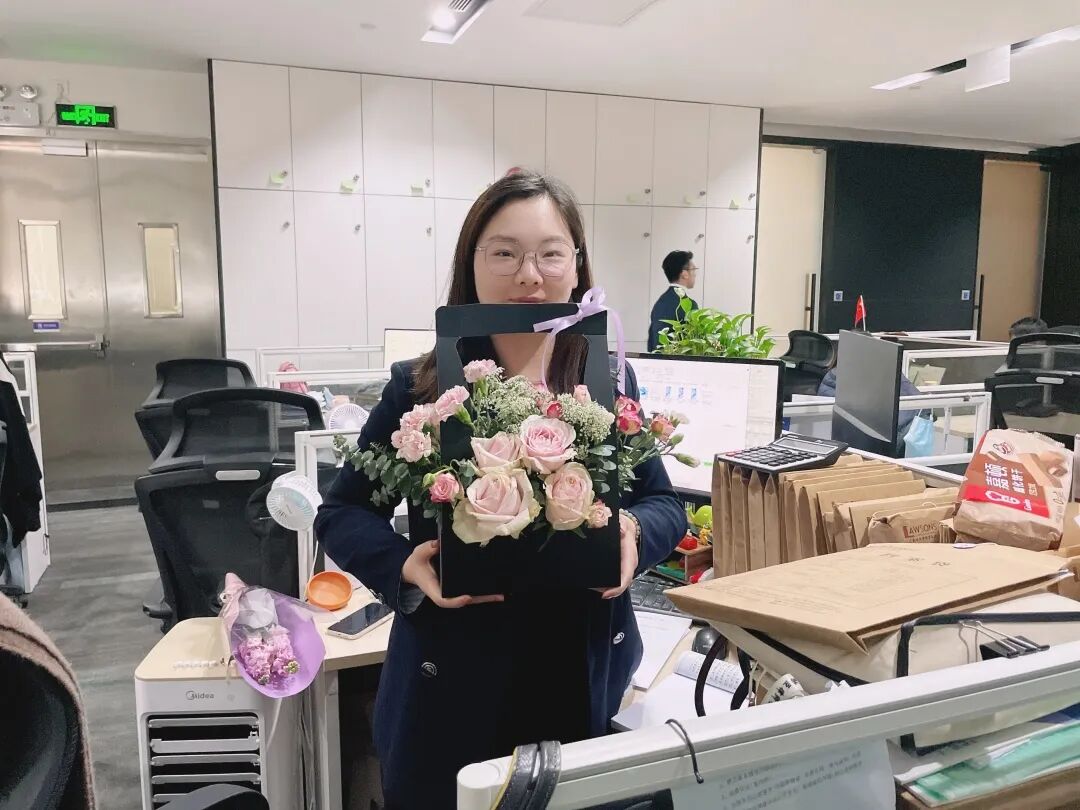 随后,诺臣男神们为每一位在工作岗位上的女同事送上花篮和祝福,希望她们未来的生活也能像鲜花一样多彩,绚烂。