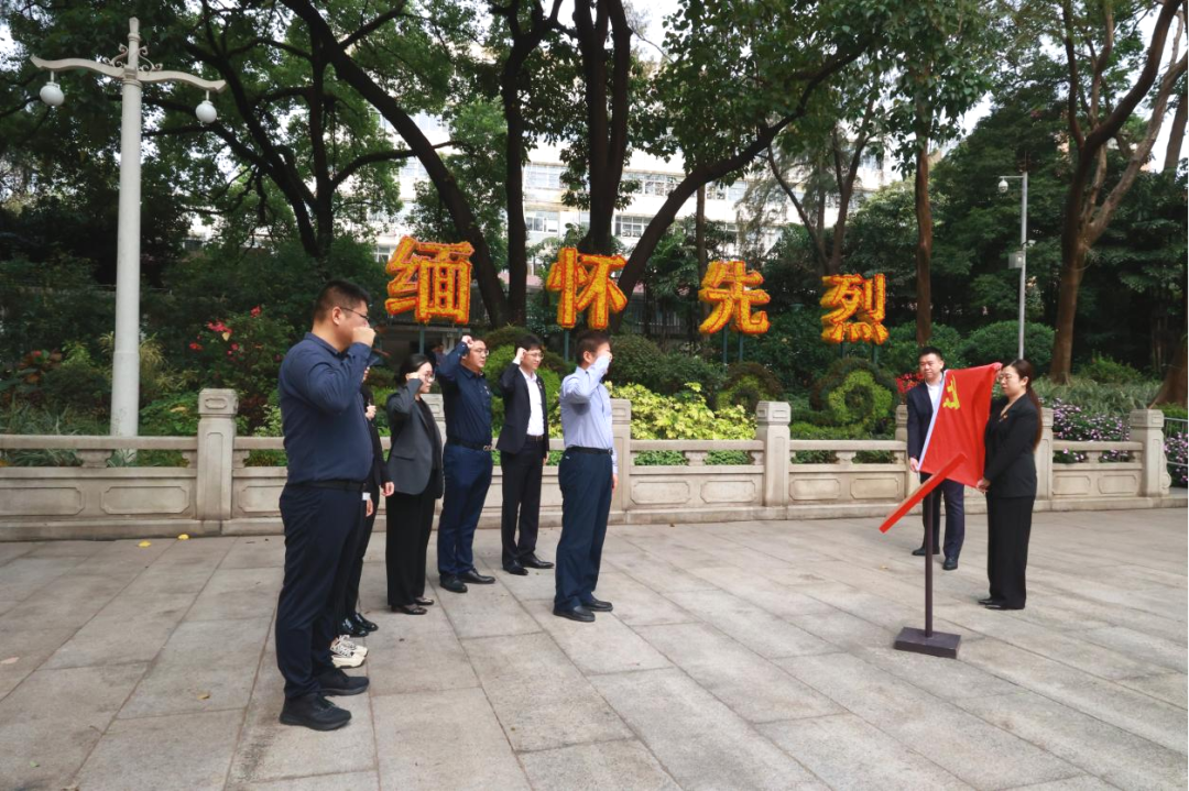 缅怀英烈魂,铭记来时路。为缅怀革命先烈,弘扬革命精神,传承红色记忆,4月9日,广东诺臣律师事务所党总支(以下简称“诺臣所党总支”)在广州起义烈士陵园组织开展“传承英烈精神,赓续红色血脉”缅怀先烈主题党日活动。诺臣所党总支书记官选斌律师、副书记彭莎律师、统战委员李小林律师、纪检委员杨振国律师、宣传委员车天驰律师、组织委员刘珒律师及党员代表周倩仪律师、谢扬律师、黎嘉敏律师等参加了本次活动。
