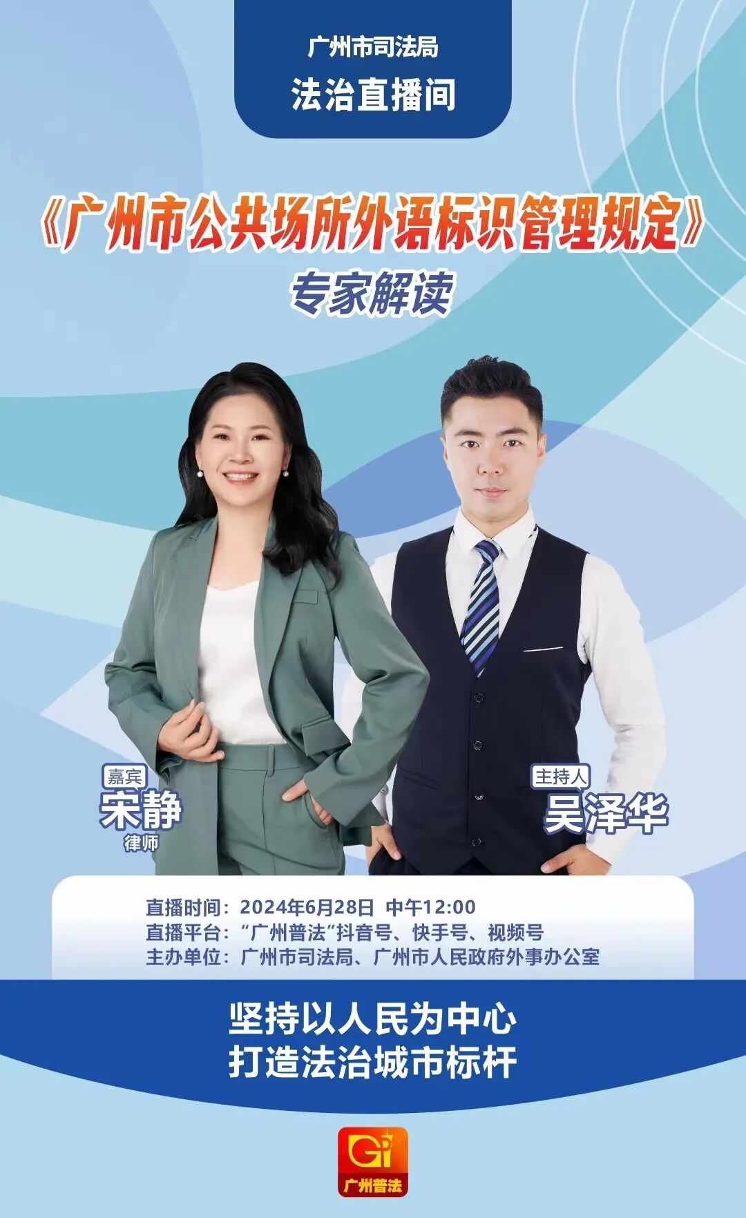 直播带货你应该听说过,直播“带法”了解一下?广州市司法局、广州市人民政府外事办公室以直播的形式联合主办开展《广州市公共场所外语标识管理规定》(简称《规定》)专家解读,获得群众的一致好评。