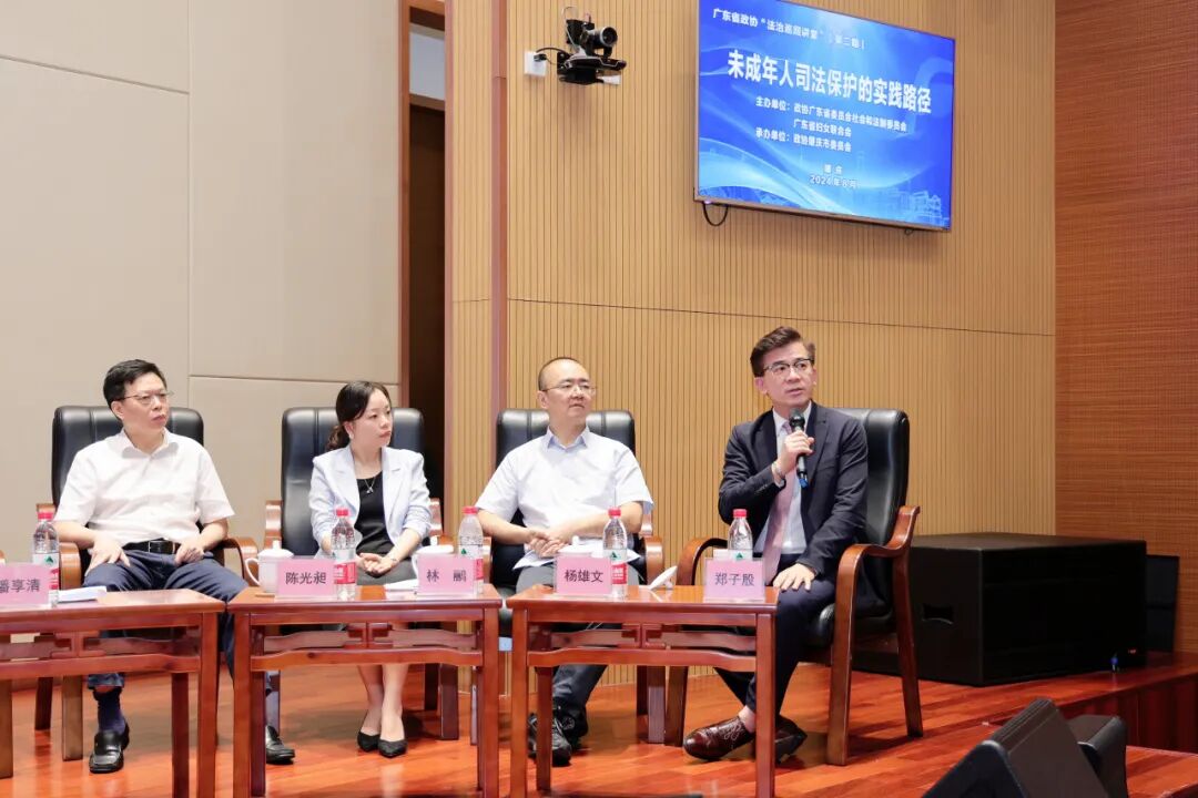 活动特邀4名在未成年人保护领域具有丰富理论研究和实务经验的人大代表、政协委员进行授课。广东诺臣律师事务所高级合伙人、全国律协未保委副主任郑子殷律师为代表之一,郑律师围绕未成年人保护专题,聚焦“未成年人司法保护的实践路径”开展主题分享。郑律师通过分析典型案例,结合自身工作实践,深入分析未成年人保护工作面临的形势任务,探讨有效保护未成年人的实践路径,并与现场听众进行互动交流。