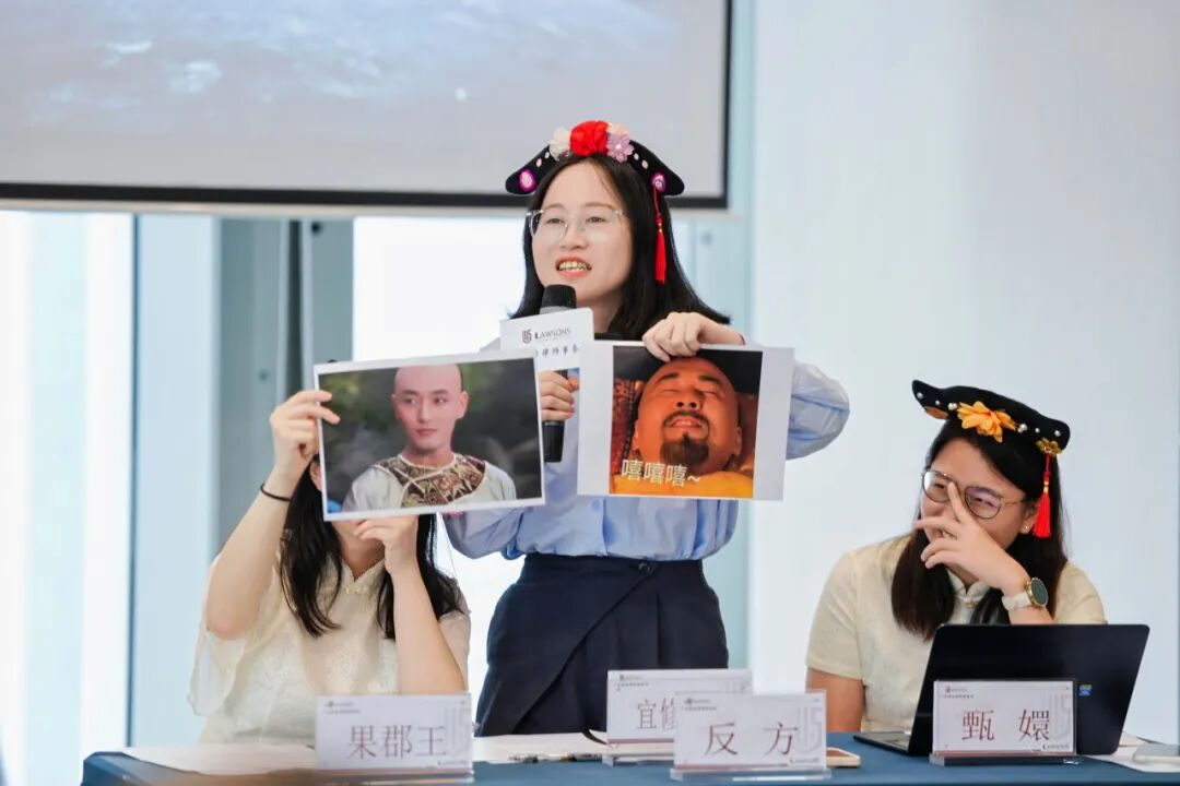 接下来,由黄子祺、许娴炜、王宇航、赵子炎、林宝坤、陈欣怡六位律师共同演绎《甄嬛传》片段配音——“滴血认亲之绝地反击”,角色反串的反差感引发现场笑声不断。