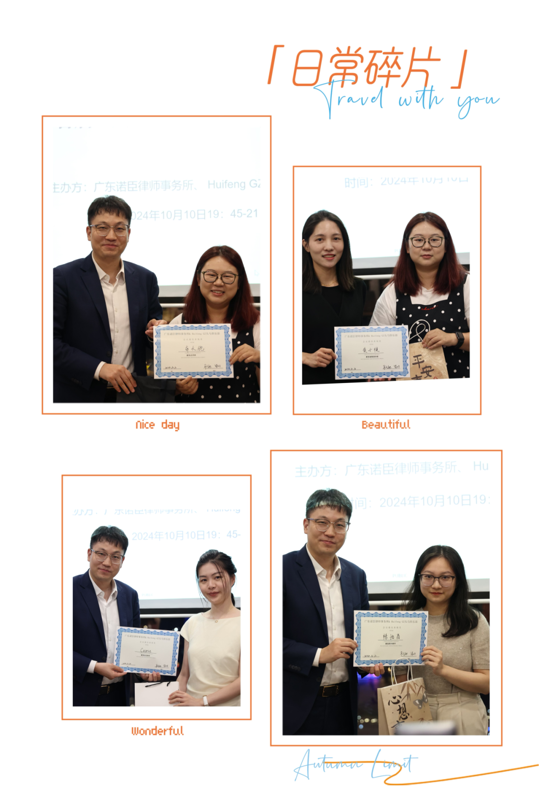 最终,通过评选,车天驰律师荣获“最佳点评师”,诺臣所黄子祺律师荣获“最佳备稿演讲”,陈怡茵律师荣获“最佳即兴演讲”。