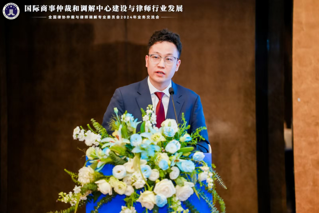 广东诺臣律师事务所管委会副主任、一级合伙人车天驰律师作为广东律师代表应邀参加本次活动,并在圆桌座谈——“青年律师在国际仲裁领域快速成长路径”环节进行了全英语发言。