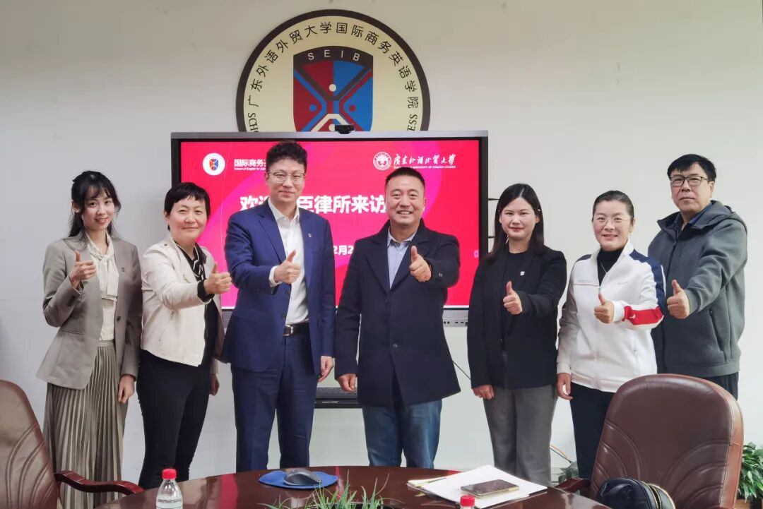 2024年12月26日,广东诺臣律师事务所(以下简称“诺臣所”)管委会副主任、青年律师工作委员会主任车天驰律师,行政主管苏慧英等一行受邀到广东外语外贸大学商务英语学院(以下简称“广外商英学院”)交流座谈。广外商英学院学院党委书记苏冬燕、党委副书记杜焕君、副院长汪谓超、法律英语系系主任张新红、法律英语系教师李燕等出席会议,双方就未来共建合作事宜展开热烈讨论。