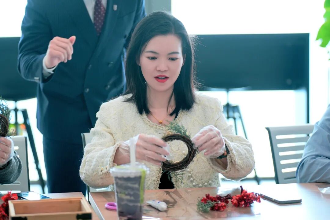 活动在一片欢声笑语中临近尾声,诺臣所管委会副主任、青工委主任车天驰律师作活动闭幕总结发言。车天驰律师表示各位组织者与参与者都热情高涨,本次活动举办的十分成功,大家制作的花环都极具个人特色,在即将到来的2025年,希望大家能够如花环的所象征的一样,生活幸福、工作顺利。