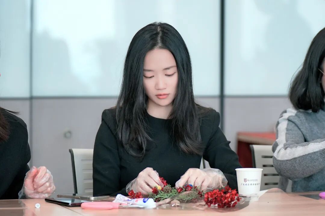诺臣所合伙人陈冰锦律师作为主持人与花艺老师共同带领大家开始花环制作。