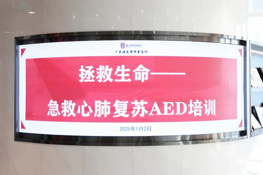 在紧急情况下,及时的急救措施往往能为患者争取到宝贵的抢救时间,甚至挽救生命。近日,广东诺臣律师事务所(以下简称“诺臣所”)特别购置了一台自动体外除颤器(AED),并将其放置于前台区域,以便迅速响应,为所内人员及访客提供宝贵的生命支持。