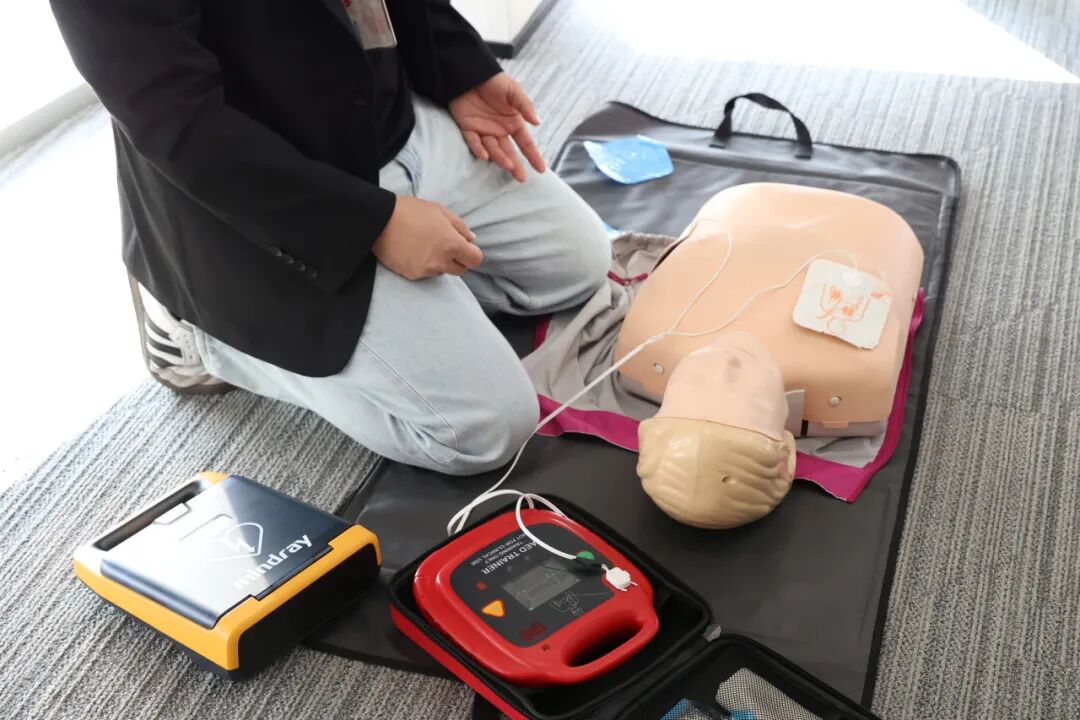 培训中,陈伟老师详细讲解了急救基础理论、AED的操作流程、使用注意事项以及心脏骤停的识别等。参会人员认真聆听并积极互动,在导师的一对一指导下,模拟真实急救状况,熟练掌握 AED 使用技能,确保动作规范、准确,提升了急救技能水平。