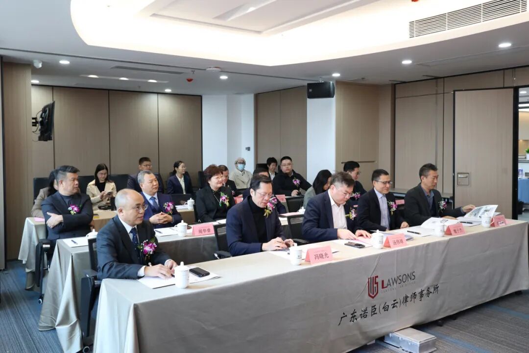 白云区司法局党组书记、局长汤伟球,副局长魏子杰,鹤龙街道办事处二级调研员姚居善,白云产业投资集团党委副书记、纪委书记、董事冯晓光,白云区产业园区促进会会长阮重文等领导出席了此次活动。本次仪式由诺臣所高级合伙人、管委会常务副主任王静律师担任主持。