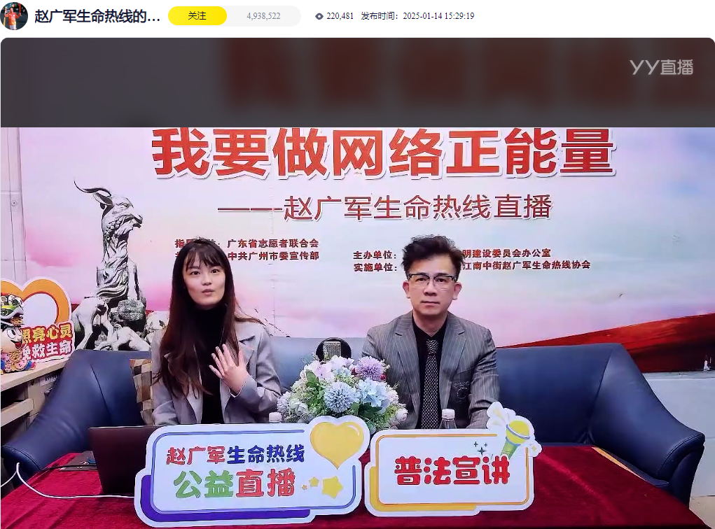 2025年1月14日,在中共海珠区委统战部,民盟广州市委法制委、民盟海珠区委基层委员会、广东省律师协会的指导下,广东诺臣律师事务所高级合伙人郑子殷律师及其团队助理李园静做客赵广军生命热线直播间进行普法直播,两位嘉宾在直播中分享国内外儿童观的发展过程并结合案例对儿童观进行探讨,直播吸引了220481人观看,反响热烈。