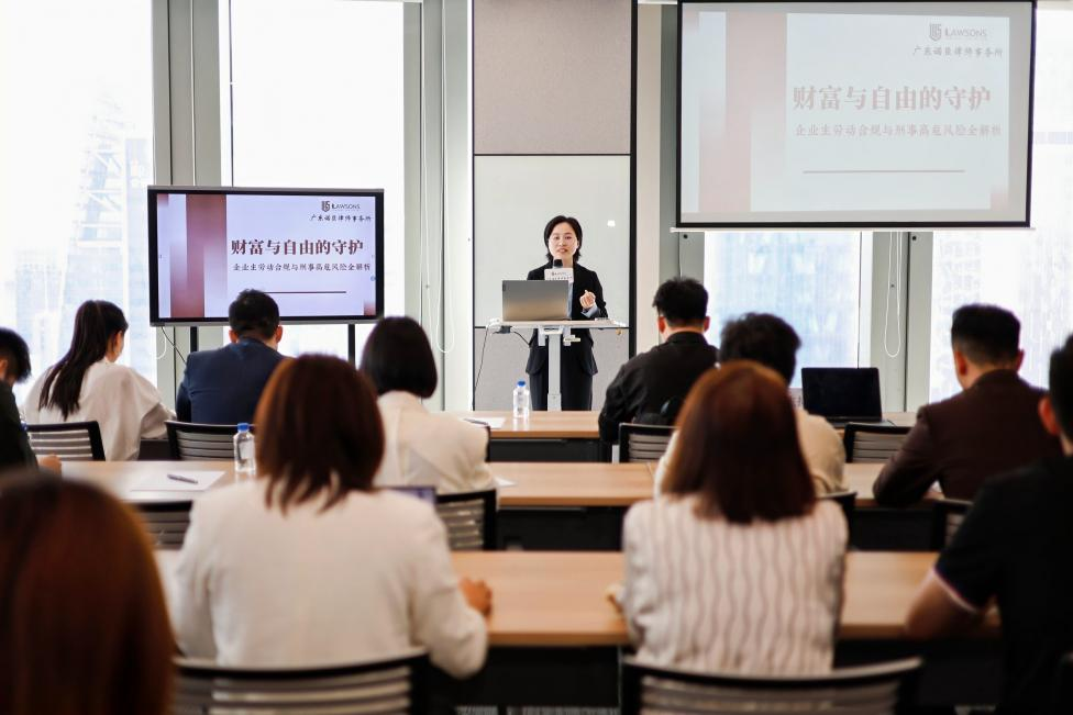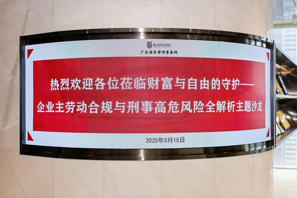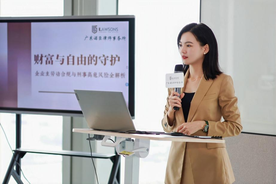 2025年5月15日下午,由广东诺臣律师事务所青年律师工作委员会(以下简称“青工委”)精心打造的《财富与自由的守护 —— 企业主劳动合规与刑事高危风险全解析》主题沙龙,在众多企业家与企业高管的热切期待中如期拉开帷幕。本次讲座由青工委副主任梁伟君律师主持,由青工委两名青年律师陈冰锦和傅明现作主讲人分享企业家关注的刑事和劳动课程。活动现场座无虚席,气氛热烈,一场关于企业法律风险防范的思想碰撞就此展开。