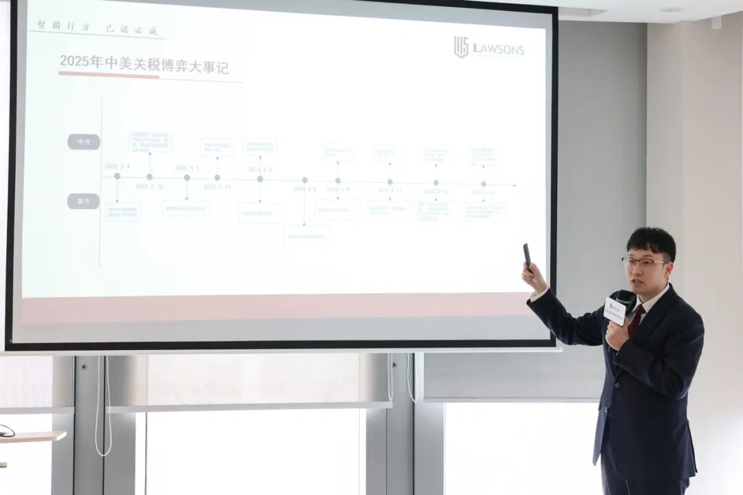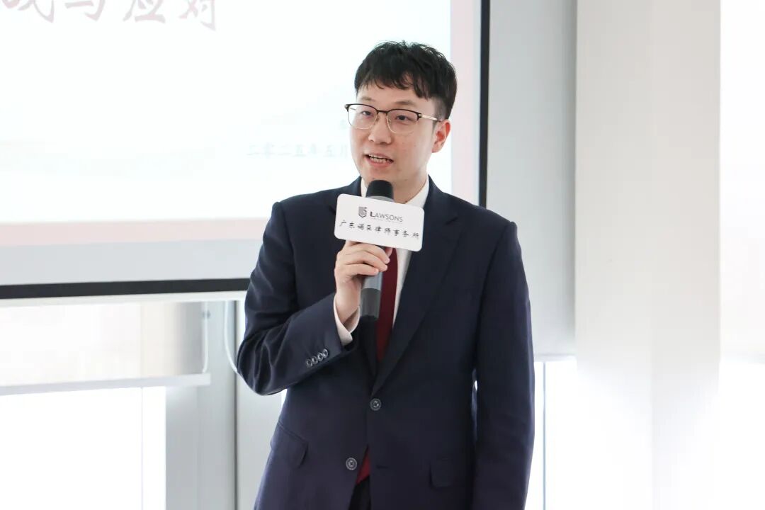 最后,由我所车天驰律师带来主题为“中美贸易战背景下,跨境合同履行的挑战与应对”的分享。车律师表示,在贸易战背景下,企业可能出现履约困难的情形。针对已签订合同,建议通过情势变更等条款协商利益分配、损失分担、解除合同事宜,减少企业损失。对未来合同签订,建议增设关税风险承担条款及履约障碍条款,优化协商程序和争议解决条款,为中国企业出海稳固合作关系、出海市场秩序维护提供思路。