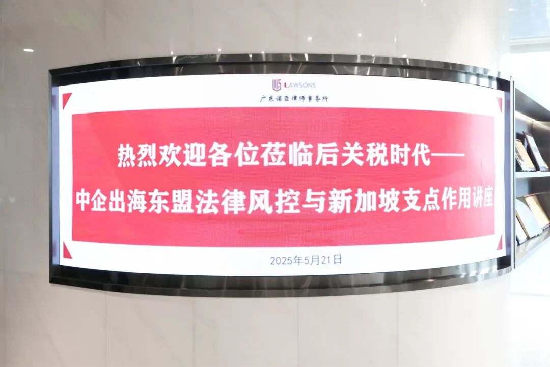 2025年5月21日下午,由广东诺臣律师事务所青年律师工作委员会(以下简称“诺臣所青工委”)组织举办“后关税时代——中企出海东盟法律风控与新加坡支点作用”讲座,荣幸邀请新加坡Tito Isaac & Co LLP管理合伙人张奕渼律师(Chong Yi Mei )、新加坡Tito Isaac & Co LLP公司法与商事法主管喻律师(Ferris Yu)以及诺臣所管委会副主任、党总支宣传委员、一级合伙人车天驰律师为此次讲座作主题分享。