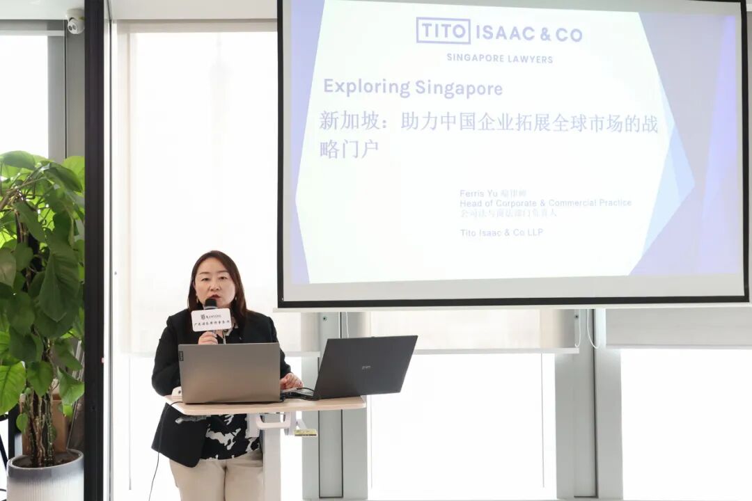 随后,喻律师就“新加坡:助力中国企业拓展全球市场的战略门户”主题展开分享。结合阿里巴巴、腾讯等出海成功案例,喻律师指出,新加坡凭借稳定的外交政策、全球领先的法治环境及低企业税率等利好,成为中企布局东盟出海业务的核心枢纽。