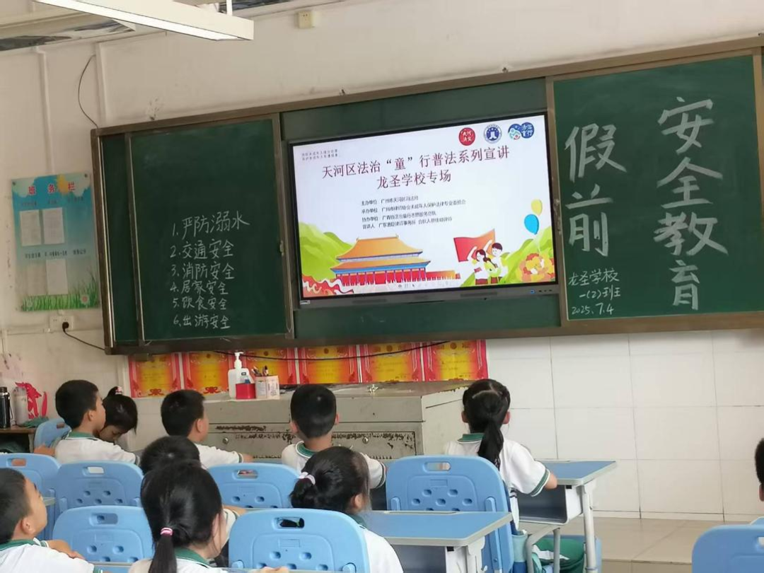 2025年7月4日,广东诺臣律师事务所合伙人蔡佳峻律师受邀至广州市天河区龙圣学校,为全校一至八年级约1500名学生开展暑假安全讲座。由于近期天气炎热,为保障活动顺利开展,特采用校园广播宣讲的形式,并实时配合PPT展示,以增强宣讲效果。