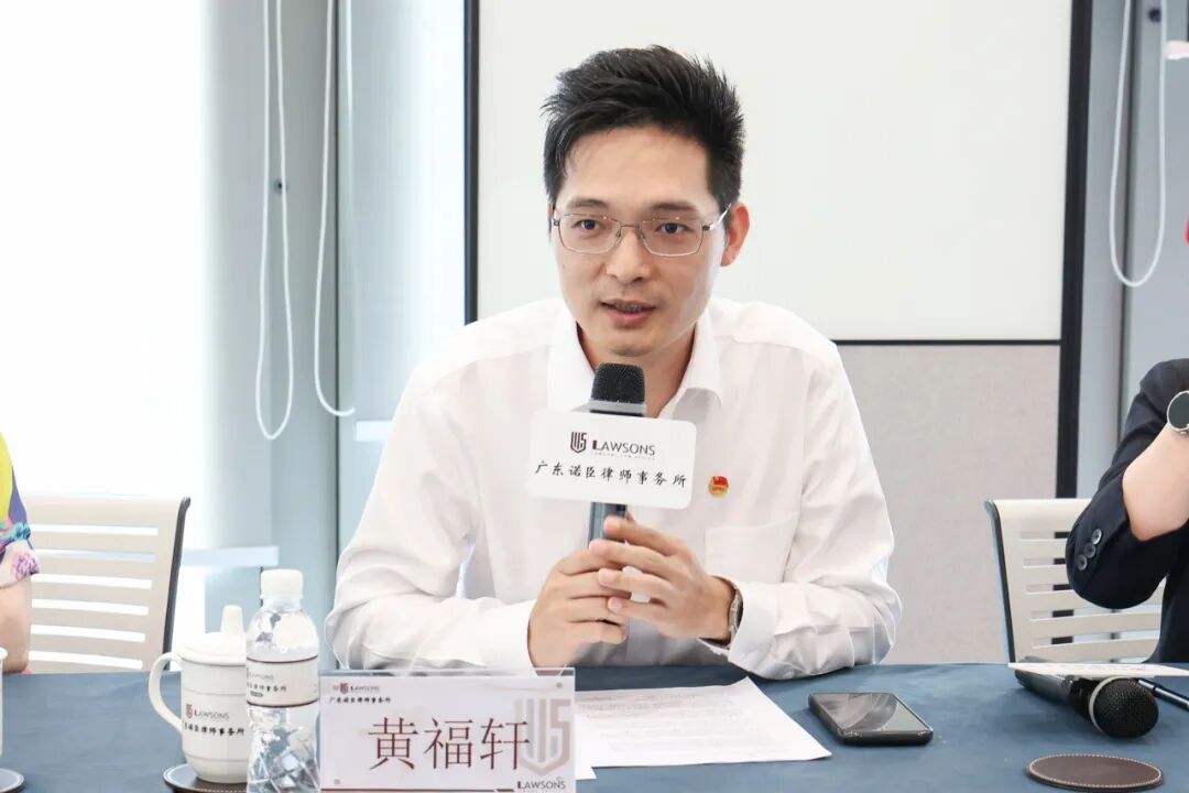 黄福轩委员代表广州市律师行业团委向诺臣所团总支提出几点要求:要坚持政治领航,深学党的理论及依法治国论述,把准执业方向;聚焦主业需求,搭专业平台、护成长关切,强青年归属;发挥专业优势,投身普法、援助等公益,树责任形象;夯实组织根基,健全机制、提委员能力,聚青年信赖;主动争取支持,融入律所战略,促团务与全局同频共振。