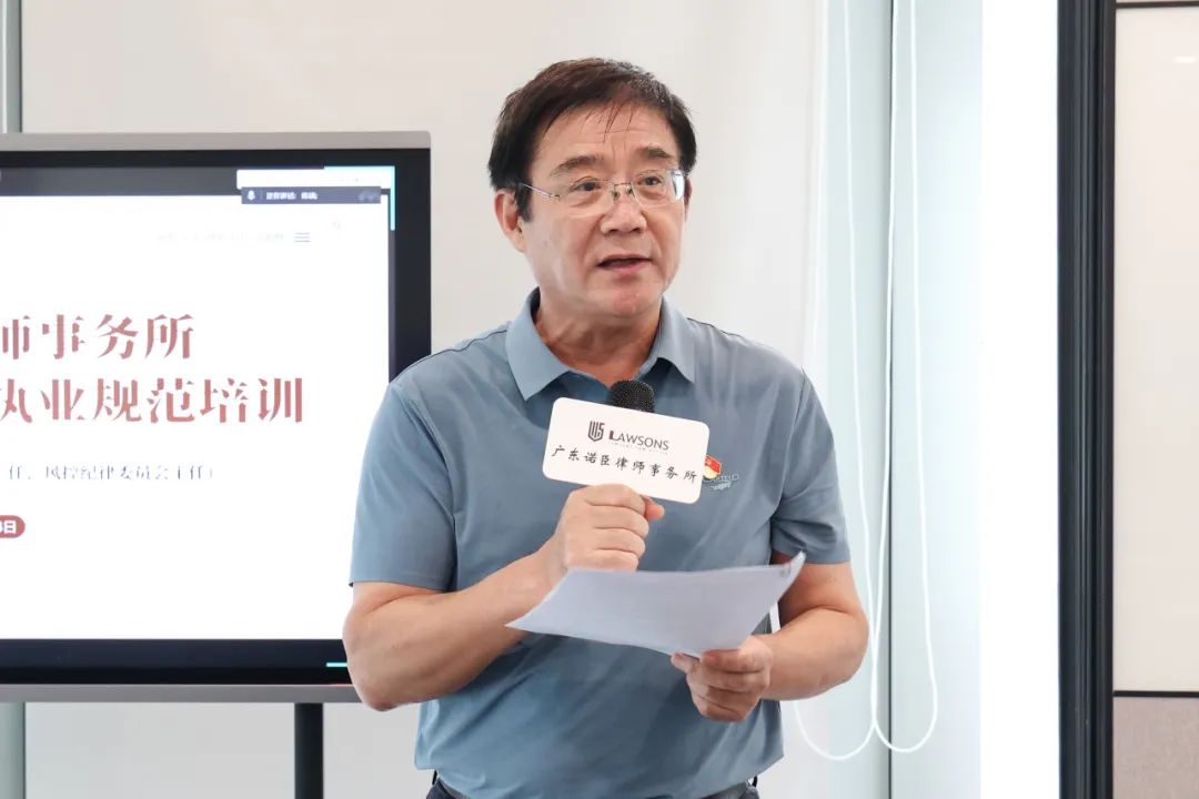 雷建威律师从监督与风险防控的角度,强调了执业规范的重要性。他指出,监事会始终关注律所合规体系建设与执行情况,职业道德不仅是律师个体的自律要求,更是律所整体风险控制的基石。他提醒各位律师要时刻保持警惕,将合规意识融入每一个案件、每一个环节,共同维护诺臣所的声誉与品牌价值。