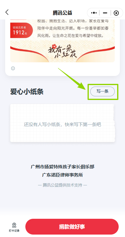 在页面下方“爱心小纸条”留言板写下想说的话,无论是一句加油、一段祝福,还是对特殊孩子未来的美好期许,都将成为他们前行的力量。