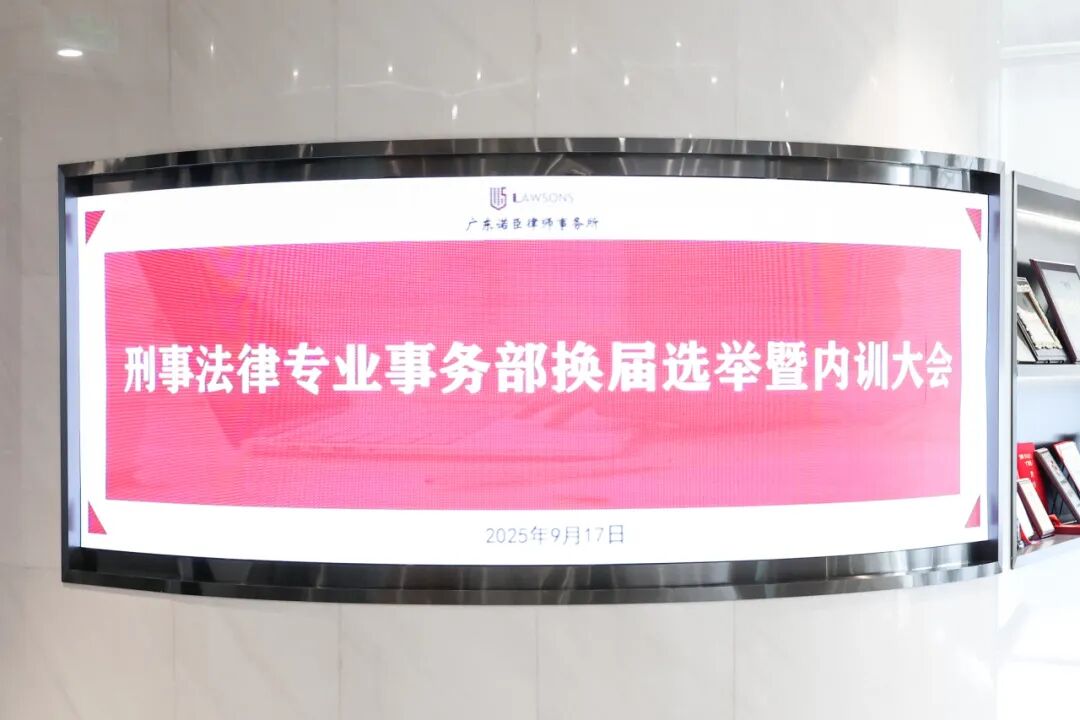 随着广东诺臣律师事务所第三届刑事法律专业事务部(以下简称“诺臣所刑事事务部”)任期届满,为确保所内刑事业务薪火相传、再攀高峰,并为全所律师搭建常态化学习交流平台,2025年9月17日下午,刑事事务部换届选举暨内训大会在律所顺利召开。诺臣所党总支书记、管委会主任、高级合伙人官选斌律师,管委会常务副主任、行政总监、高级合伙人王静律师,高级合伙人石伟民律师、常琪律师,一级合伙人莫春英律师、陈舒媚律师等出席本次会议,一众刑事事务部成员参加会议。