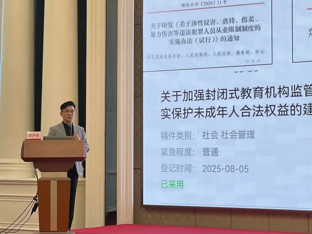 广东省律师协会未成年人法律专业委员会主任、广东诺臣律师事务所高级合伙人郑子殷律师受邀参加培训并进行授课。郑子殷律师为大家解读了未成年人保护相关政策,重点讲解国家兜底儿童福利制度与成员单位联动机制文件,详解市直单位各司其职,帮助参训者清晰界定职责边界,破解“遇事不知找谁、多部门协作低效”的难题。会后,一位未保工作者表示:“本次培训收获满满,郑子殷律师总能用专业视角帮我们打开新的思考方向,他在工作中对孩子需求的重视和全面考量总能落实地的为孩子维权,特别值得我们学习,也让我看到了自己的不足。接下来我会多多关注郑律师的分享,多向他取经补短板。”