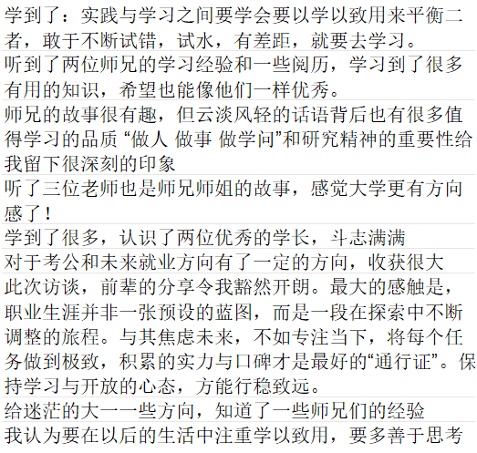 本场访谈没有华丽的辞藻,却用最真实的故事打动了在场每一位同学。活动结束后,同学们纷纷分享感受: