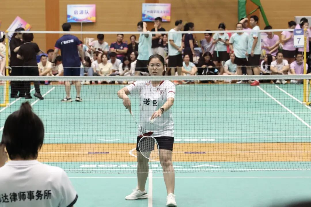 开幕式后,羽毛球团体赛马上开始。由高级合伙人李小林律师和诺臣所管委会副主任、青年律师工作委员会主任车天驰律师带队,合伙人周文洁律师、梁伟君律师、姚力平律师、王宇航律师、庾绮云律师、陈冰锦律师、陈建豪律师及冯科律师、叶松欢律师、彭琳10位运动健将组成的诺臣羽毛球队迅速投入战斗,大家默契配合、全力以赴。