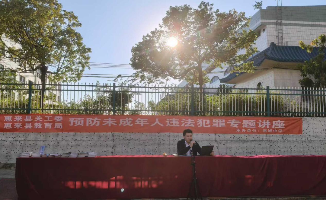 2025年11月21日下午,广东诺臣(揭阳)律师事务所党支部书记、执业律师陈卓芬走进惠来县惠城中学葵梅校区,为初一、初二年级共计两千三百余名学生带来了一场主题为“法治护航,青春向阳”的法治教育讲座。本次活动由惠来县关工委与惠来县教育局联合举办,旨在增强青少年的法律意识,营造平安、健康的校园成长环境。