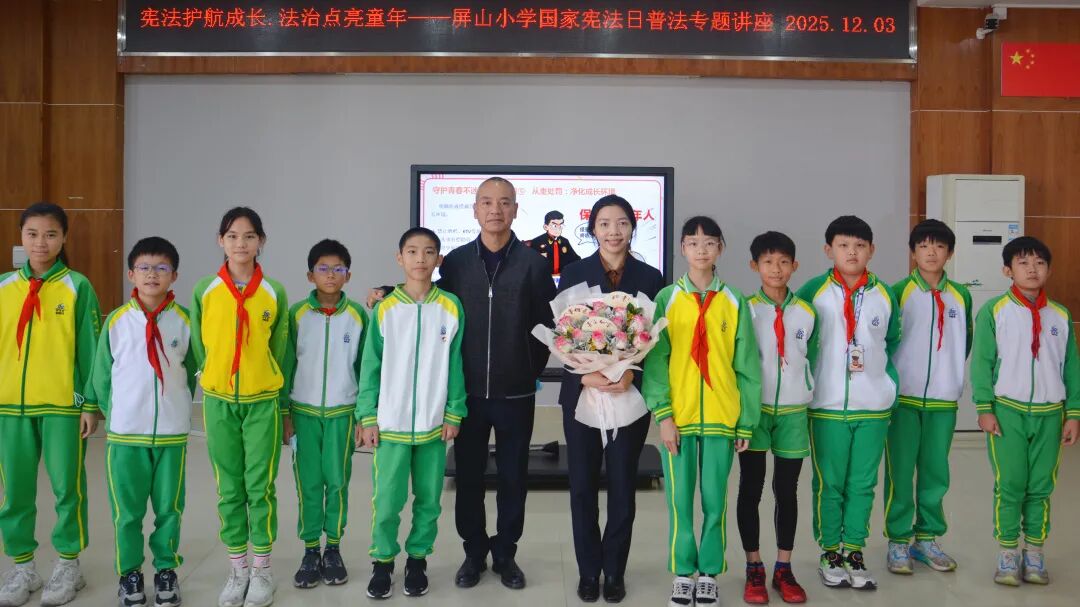活动于11月28日至12月4日持续推进,孔律师先后走进番禺区钟村第二小学、钟村中心小学、屏山小学及市桥云星小学。作为未成年人保护领域的专业律师,她摒弃生硬说教,而是结合已办结的实务案例系统讲解宪法的基本内容、核心原则与精神内核,并通过解读法律条文、播放普法视频等方式,重点介绍《治安管理处罚法》中针对未成年人保护的重大调整的内容,让法律知识入脑入心。