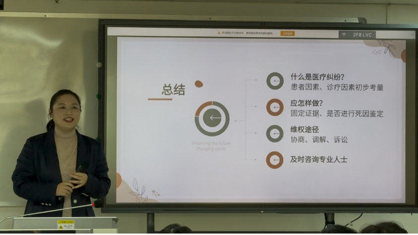 讲座中,刘芳律师首先从自己的亲办案例开始讲解,回应大家在日常生活中可能会遇到的实际问题,讲座内容专业而不晦涩。紧接着,刘芳律师从医疗行为的风险属性入手,结合实践中常见情形,介绍了医疗纠纷与医疗事故的相关情形、概念,帮助大家更好判断医疗损害纠纷的发生。并围绕发生医疗纠纷后应当如何理性应对,重点讲解了证据留存、病历资料管理以及合法维权的基本流程。