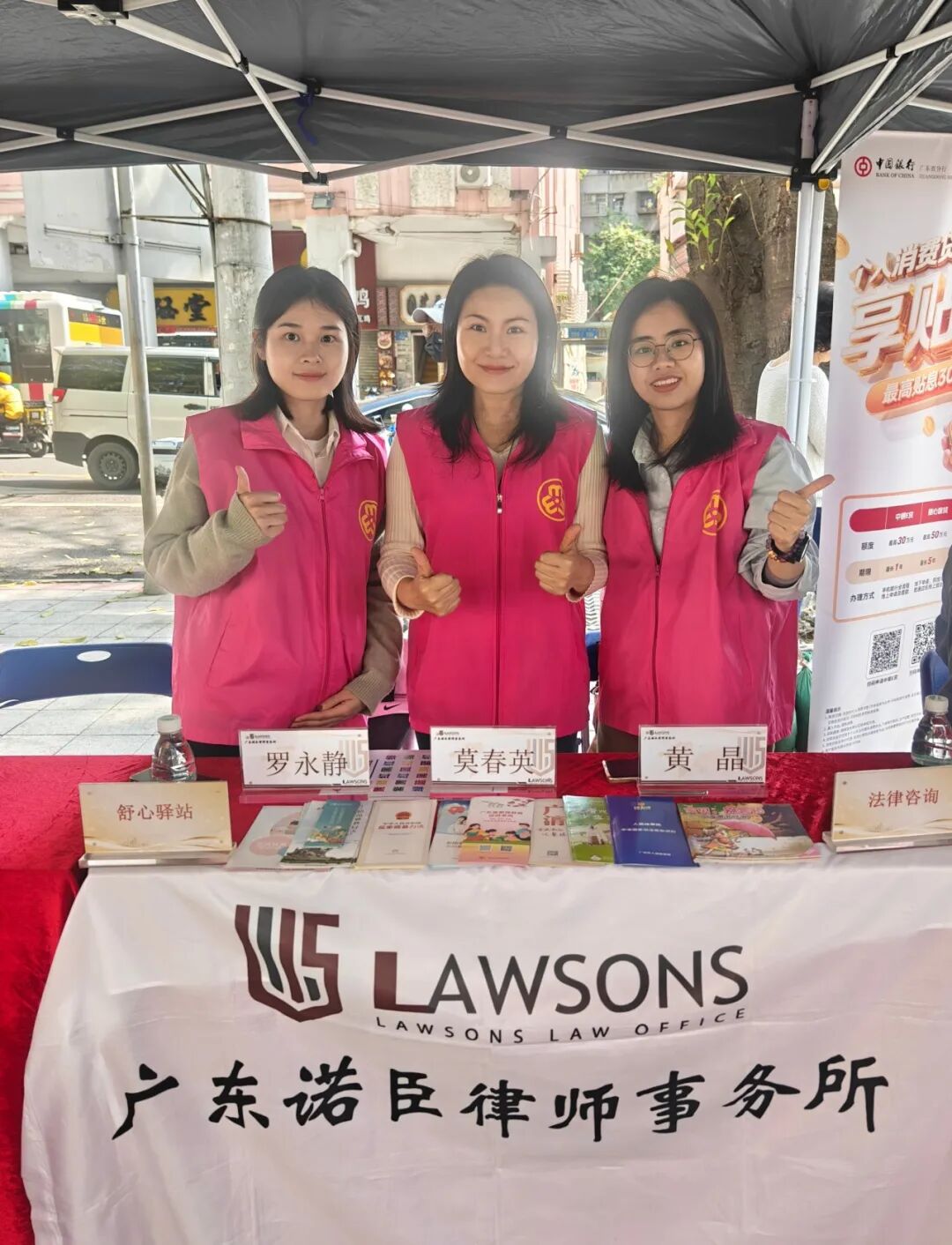 诺臣所公益委主任、合伙人莫春英律师、公益委秘书长黄晶律师、副秘书长罗永静律师,继续应广州市越秀区妇女联合会邀请参与该活动,在现场为市民提供公益法律咨询。