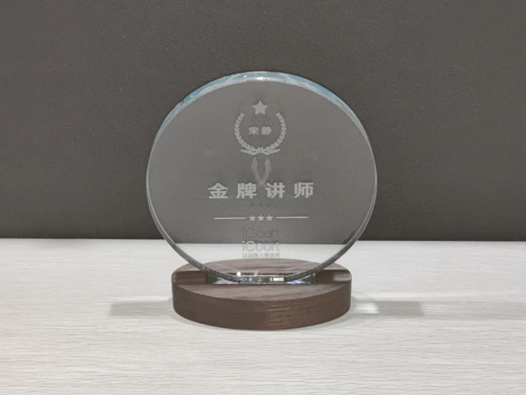 近日,宋静律师获得iCourt金牌讲师称号,并被授予荣誉奖杯。