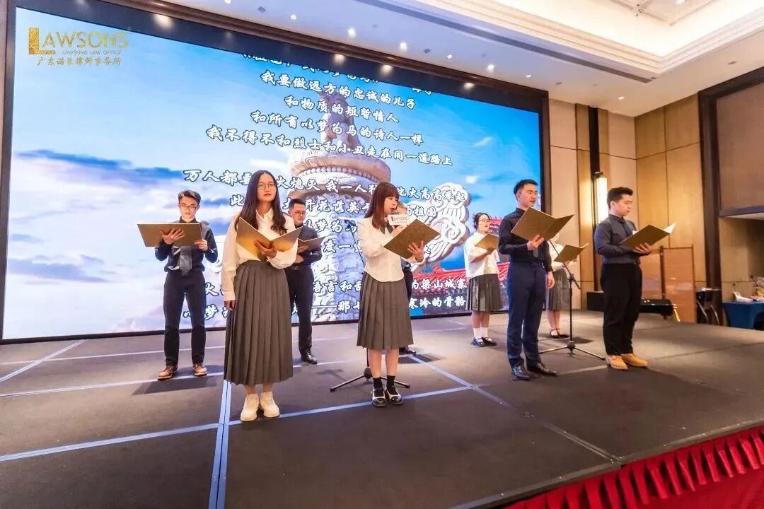 令大家惊喜的是,诺臣所的高级合伙人也精心准备了朗诵节目《满江红•诺臣人感怀》,诗歌鼓舞人心,引起大家阵阵掌声。